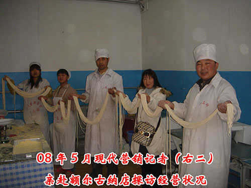 我通過聯(lián)系方式聯(lián)系到了一品鮮總部的王經(jīng)理,王經(jīng)理熱情的解答了我的各種疑問,并且讓我們一定要親自到總部來看一看。兩天后我只身來到河南鄭州一品鮮,先去了他們的零售店,看他們設(shè)備生產(chǎn)出來的各種面條成品,工作人員還讓我親自試?yán)媾呦洛?,煮熟后我又嘗了嘗,確實跟他們廣告上說的一樣, 口感爽滑,細膩筋道,若不是親自嘗試,真不相信是出自機器生產(chǎn)出來的面,然后王總又驅(qū)車?yán)胰⒂^了一品鮮的生產(chǎn)車間,耐心的向我講解各種型號的區(qū)別,,并根據(jù)我的情況,給我推薦機型,配具,說我剛開始做,先挑選兩款,回去經(jīng)營好了,可以慢慢再配其它的設(shè)備,聽著王總掏心窩子的肺腑之言,我當(dāng)機立斷就是它了,直接說:“王總,我相信你,現(xiàn)在就定。”當(dāng)天就在一品鮮免費提供的客房住下,第二天早上一大早就開始學(xué)習(xí)生產(chǎn)技術(shù),經(jīng)過四天的認真學(xué)習(xí)我滿懷信心的回到了家,先在自家車棚里小試牛刀,先是附近的鄰居,周邊的菜店,隨著口碑相傳,生意越來越好,現(xiàn)在我已經(jīng)在繁華地段有了一間自己的面店,批發(fā)兼零售,感謝一品鮮給了我機會,讓我自己當(dāng)了老板;感謝一品鮮,成就了我的人生!