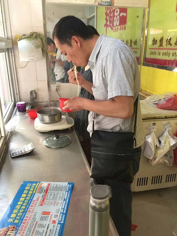 何先生品嘗新做出來(lái)的面,面條爽滑又勁道