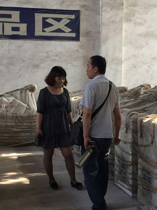 何先生在成品區(qū)參觀相關(guān)設(shè)備,工作人員耐心解釋