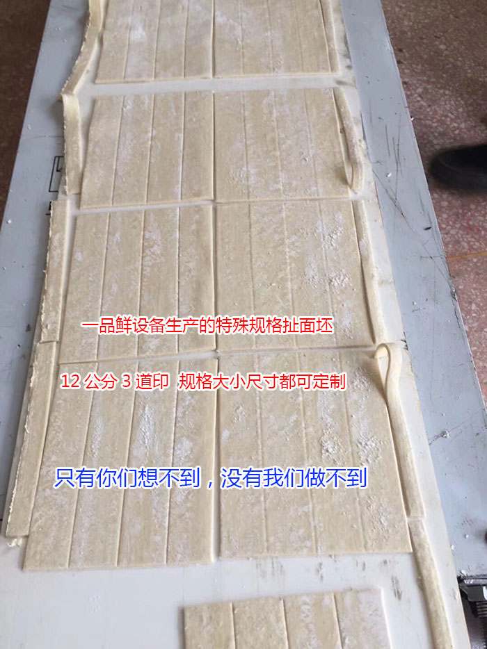 設(shè)備所生產(chǎn)產(chǎn)品品種:河南燴面、東北抻面(手撕面)、陜西、山西扯面、安徽扳面、浙江、福建、拉拉面、四川擔(dān)擔(dān)面、河北拽面、甘肅青海揪面(片)、新疆拉條子、皮帶面、普通鮮面條、掛面、餃子皮、餛飩皮、貝殼面、螺絲面、臊子面、蔬菜面、雜糧面、韭葉面等30余種產(chǎn)品。