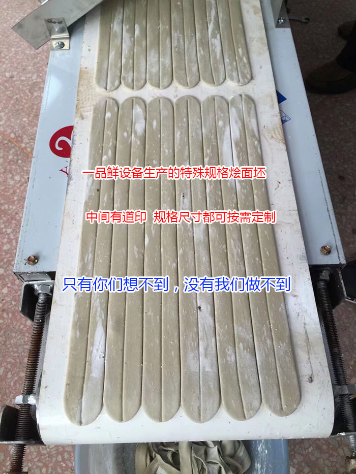 設(shè)備功能:雙輥三刀,每排可出6片面,配套有380伏或220伏電機。產(chǎn)品賣相好,面坯更筋道,可生產(chǎn)橢圓形、棗核型燴面坯,面坯重量厚度可調(diào)、自動刷油、自動處理廢料。面坯尺寸可定制。另可定制750.型,1000型,特大高產(chǎn)型燴面機,適用于面食加工廠大批量批發(fā)使用。避免以往老機型廢料不回收,刷油、即浪費食用油、又影響面坯質(zhì)量等弊端。可定制即可刷油又可撒淀粉的特殊機型。